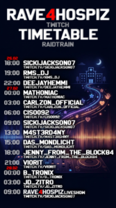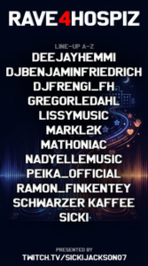 * 09:00 Uhr – RAVE4HOSPIZ LIVESHOW @ SICKIJACKSON07 (https://twitch.tv/SICKIJACKSON07)